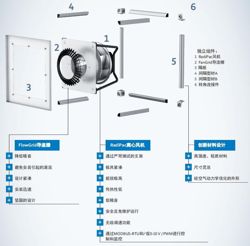 在此次上海舉辦的“2021中國制冷展”中,Ebmpapst RadiPac即插即用型風(fēng)機組合安裝,提供的FanGrid風(fēng)墻解決方案亮相展會。它采用模塊化設(shè)計,安裝便捷、節(jié)約空間,大幅度提升了系統(tǒng)的可靠性。