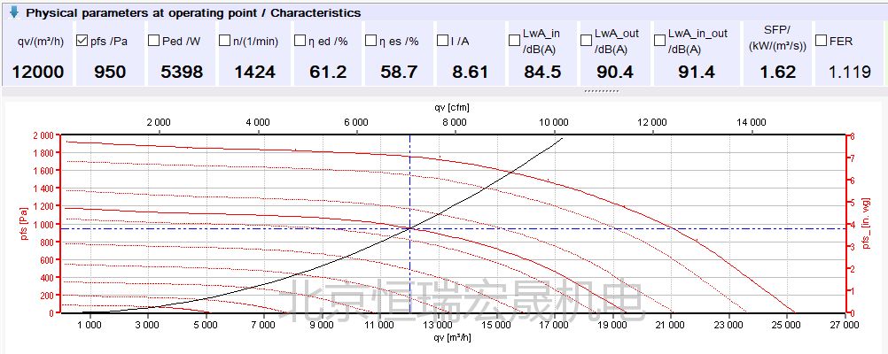 甄選Ebmpapst RadiPac離心風(fēng)機(jī)K3G630系列。功率在6.76KW,低功耗使其更加節(jié)能;風(fēng)機(jī)直徑為630mm,結(jié)構(gòu)緊湊的風(fēng)機(jī)在AHU系統(tǒng)占用的空間更小;在靜壓950Pa的情況下,最大空氣流量可達(dá)16120 m³/h,大風(fēng)量使效率更高、散熱能力更強(qiáng);風(fēng)機(jī)葉片通過空氣動力學(xué)的設(shè)計,在AHU系統(tǒng)中運(yùn)行更為安靜。