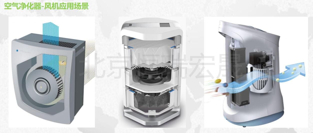 利用前向離心風機方案在空氣凈化產(chǎn)品中是一個非常好的應用。雙進風前向離心風機,它具有風量大、噪音低的特點。結構比后向離心風機復雜,需帶蝸殼運行,成本也相對較高。