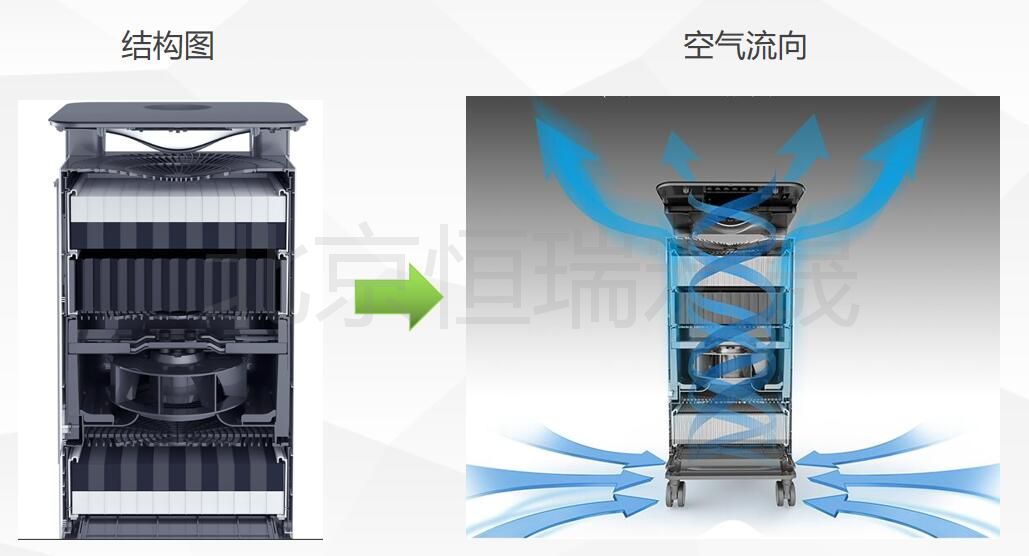 運行原理:風機將外部空氣吸入空氣凈化器,然后通過各種濾網(wǎng)將其凈化。另外一個風機再將潔凈的空氣送回房間。這一過程需要運行特別安靜的風機,并進行精確控制,以適應特殊情況。