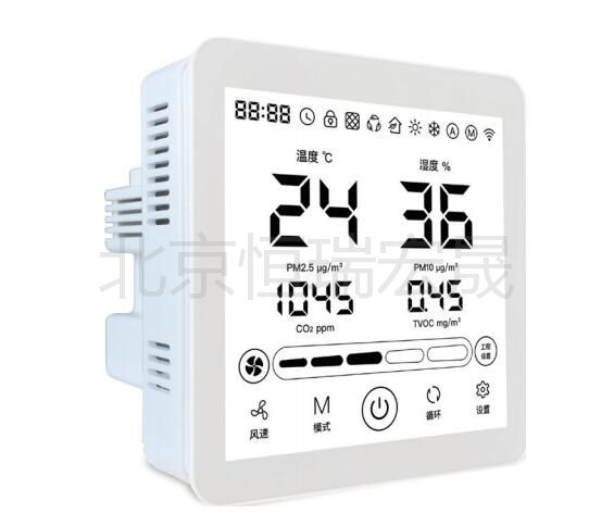 多功能智能控制器,可用于吊頂式新風機、空調、除濕機、風機盤管等設備的智能控制,采用標準86盒安裝于墻體,可通過繼電器直接控制三速AC220風機,也可使用RS-485連接電控板控制風機,產(chǎn)品內(nèi)置傳感器板,可接入PM2.5、PM10、CO2、TVOC、溫度、濕度等高精度傳感器,支持多種輸出模式,適用于不同風機,控制器自帶4寸LCD顯示屏,實時顯示設備運行狀況和檢測數(shù)據(jù),并可通過觸摸按鍵調節(jié)風機風速、模式等。