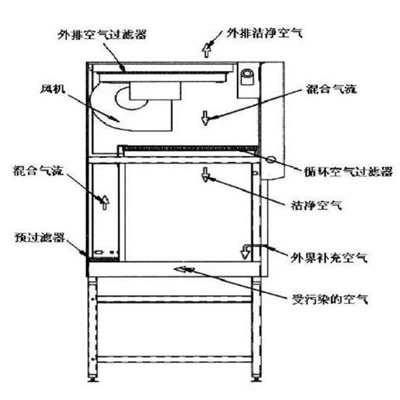 (2)外界空氣經(jīng)高效空氣過濾器過濾后進(jìn)入安全柜內(nèi),以避免處理樣品被污染;