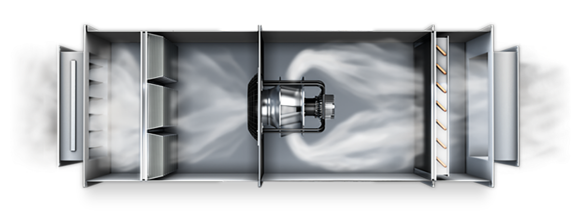 我們切實(shí)考慮到CRAH(機(jī)房空氣處理機(jī))和AHU(空氣處理機(jī)組)中的安裝情況。EC風(fēng)機(jī)升級了葉輪的出風(fēng)性能并降低了空氣處理單元中的偏轉(zhuǎn)損失。這得益于理想效率范圍和較高的整體靜態(tài)效率水平,使風(fēng)機(jī)能在保持低功耗的同時(shí),在更廣的工作范圍內(nèi)運(yùn)行。