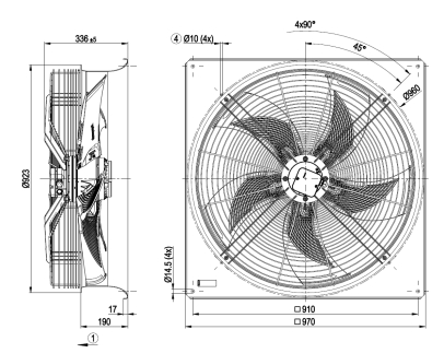 我們來看離心風機:(離心風機軸水平安裝時,要注意引出線的朝向)