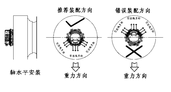 第二有時會面臨軸垂直安裝的形式,這時候就要注意了,風機一般要求定子側朝上,轉子側朝下的安裝形式,有的風機轉子上有滴水孔,如果轉子向上安裝,碰到有冷凝水的情況,水就會進入滴水孔而無法排出,所以轉子要向下安裝,這樣冷凝水才能排出