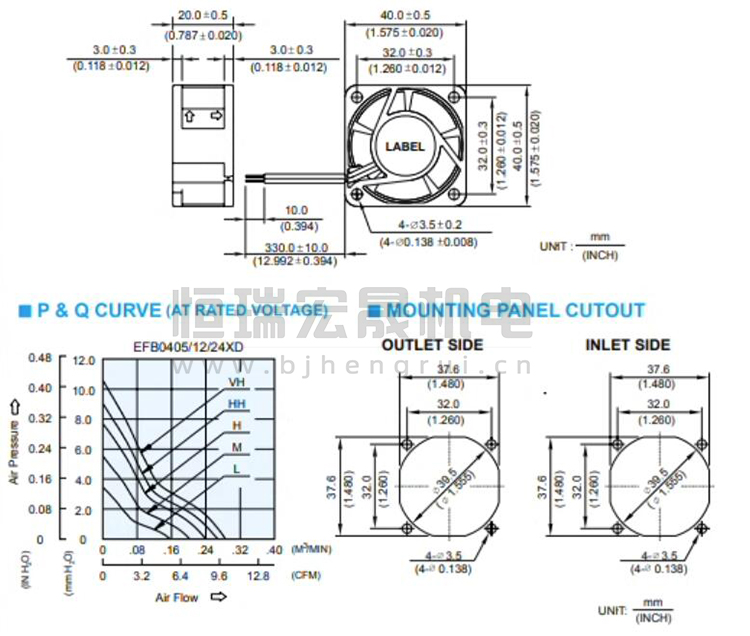 臺達(dá)Delta EFB0424VHD軸流風(fēng)機(jī)風(fēng)量結(jié)構(gòu)圖