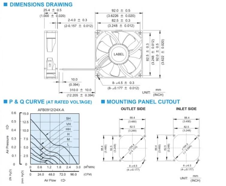 臺達Delta AFB0924SH-A軸流風(fēng)機結(jié)構(gòu)風(fēng)量圖