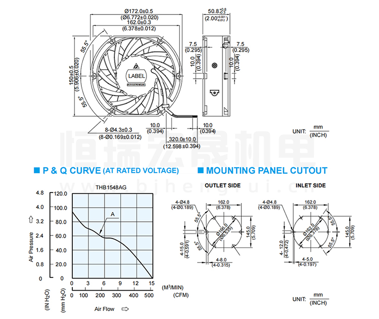 臺達(dá)Delta THB1548AG軸流風(fēng)機(jī)結(jié)構(gòu)風(fēng)量圖