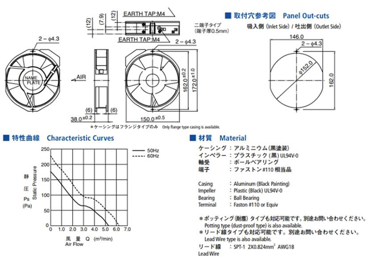 NMB-MAT美蓓亞 15038PB-A1L-EP 軸流風(fēng)機(jī)結(jié)構(gòu)風(fēng)量圖