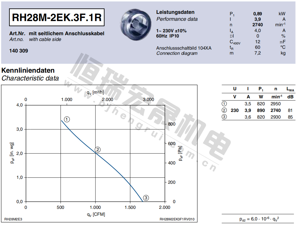 德國(guó)ziehl-abegg RH28M-2EK.3F.1R風(fēng)機(jī)曲線圖