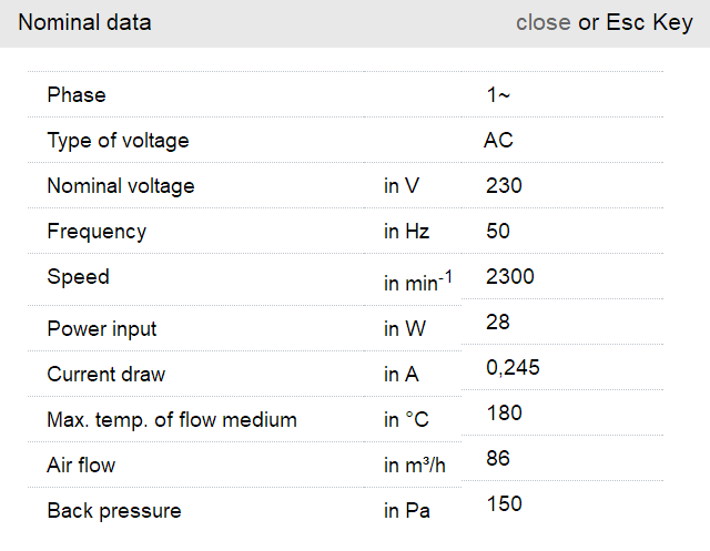 RER125-19/56風量:104m³/h 電壓:230v 電流:6.2A 功率:19W 轉速:2600r/min