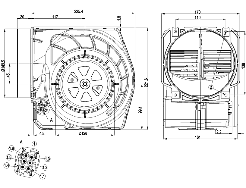 D1G160-DA33-52風量:980m³/h 電壓:48v 電流:2.9A 功率:112W 轉(zhuǎn)速:1250r/min