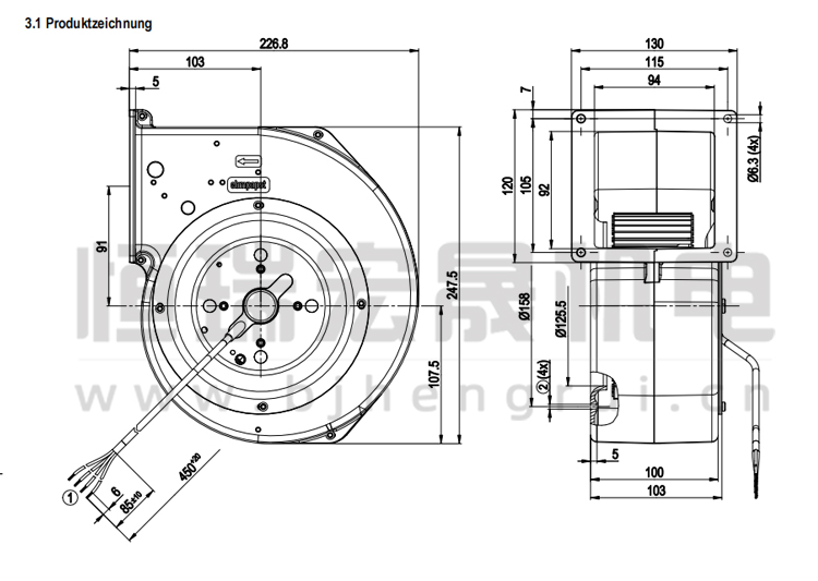 德國ebmpapst G2E146-DW07-01離心風機結構圖