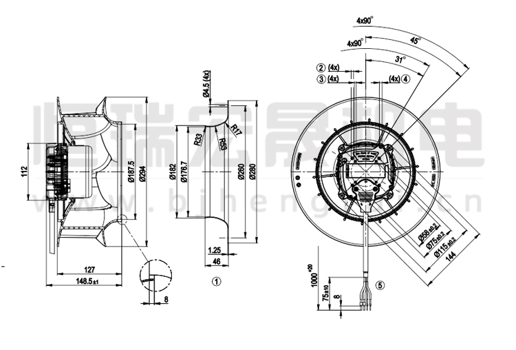 德國ebmpapst R3G280-RU65-82離心風(fēng)機結(jié)構(gòu)圖