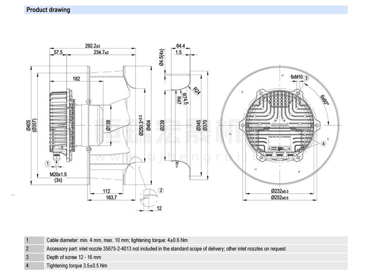 R3G355-AY40-01 風機為后向離心風機,帶向后彎曲葉片的 ebm-papst 離心風扇主要用于吸入。由于大部分壓力積聚發(fā)生在葉輪中,因此通常不需要滾動殼體。離心風扇具有非常好的液壓效率和低噪音水平,非常適合高壓。 除了節(jié)能之外,集成控制電子還可以實現(xiàn)控制、監(jiān)測和維護功能。