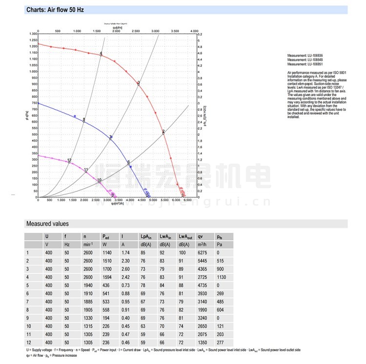 德國ebmpapst R3G355-AY40-01離心風機結(jié)構(gòu)風量圖