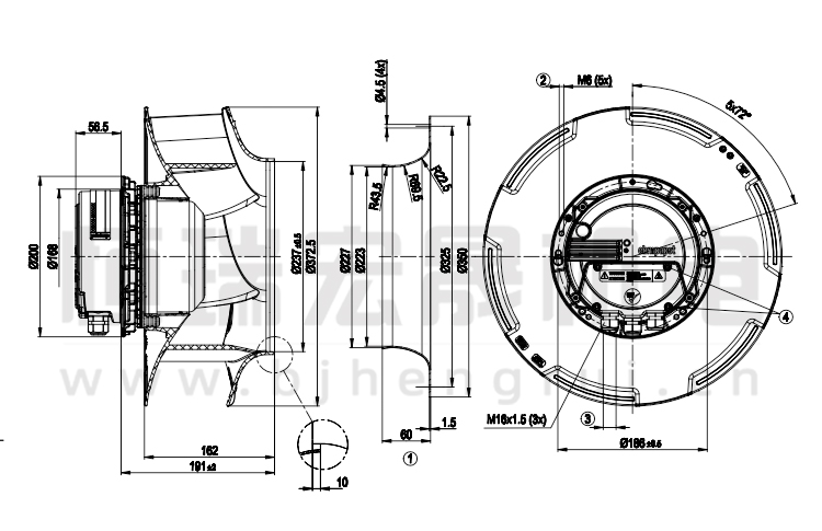 德國(guó)ebmpapst R3G355-RG56-01離心風(fēng)機(jī)結(jié)構(gòu)圖