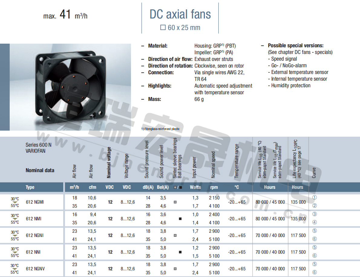 德國ebmpapst風(fēng)機(jī) □60×25mm max.41m3/h 612NMI 612NMI 612NGNI 612NNI 612NGNV