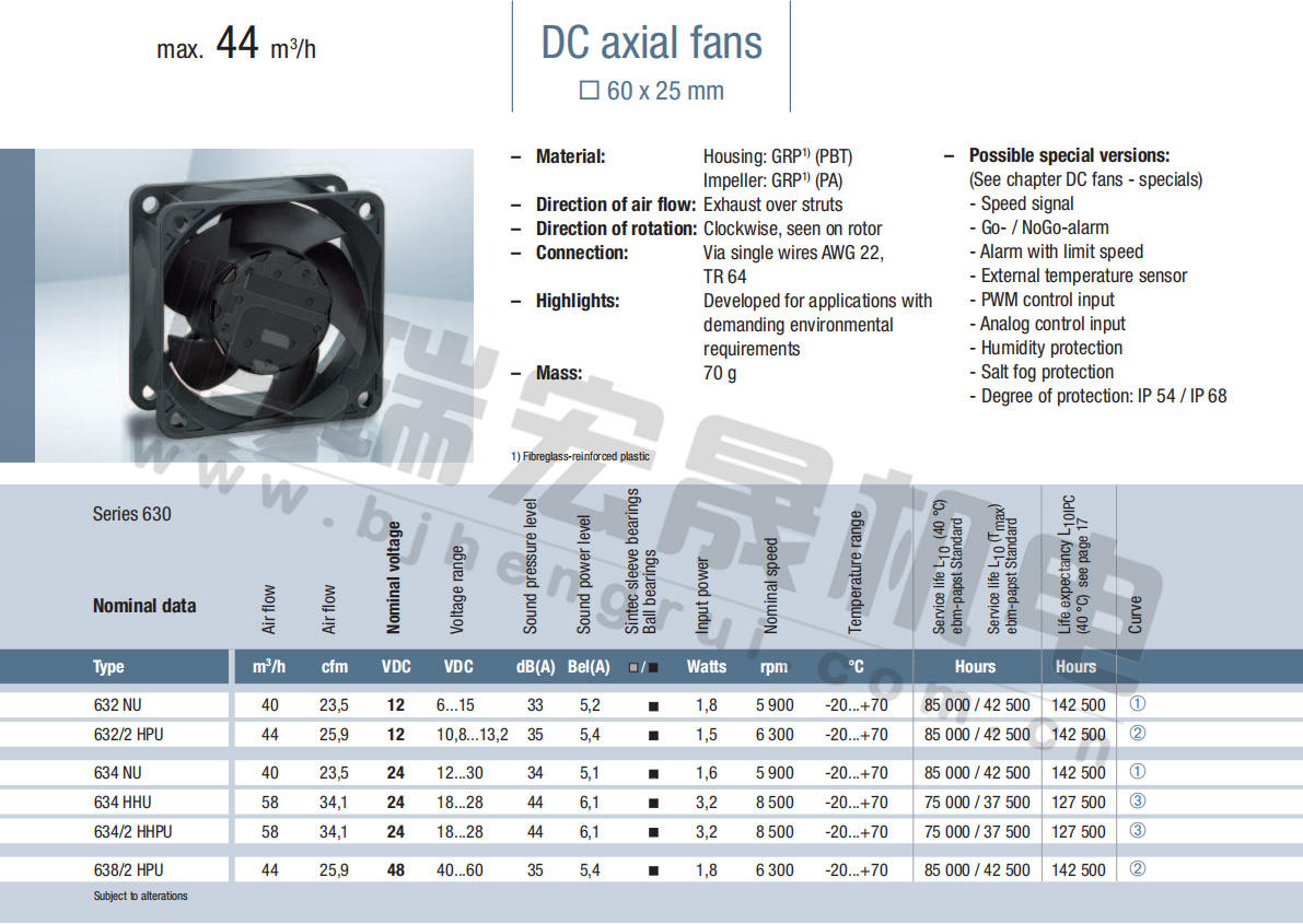德國ebm全新632NU 632/2HPU 634NU 634HHU 634/2HHPU緊湊型風機規(guī)格圖