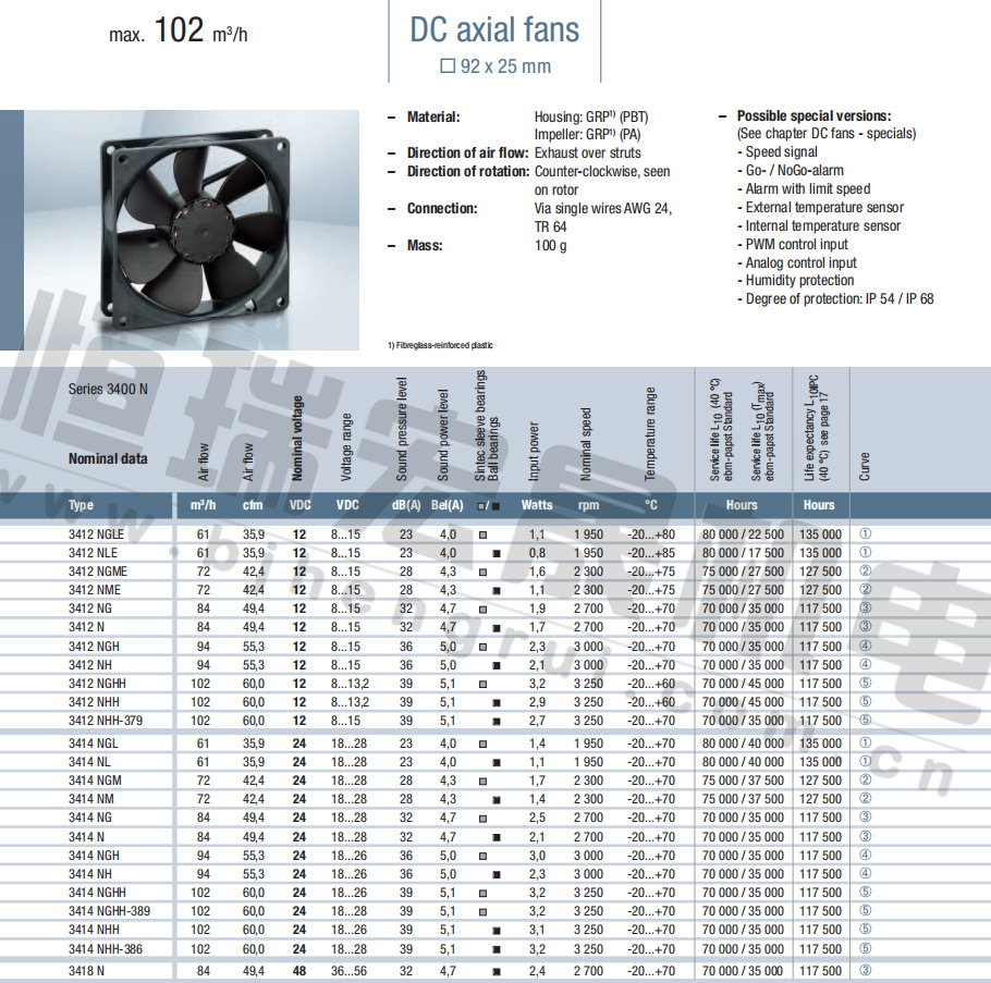 緊湊軸流風(fēng)機□92×25 mm max.102 m3/h 3412NGLE 3412NLE 3412NGME 3412NME 3412NG 3412N 3412NGH 3412NH 3412NGHH 3412NHH 3412NHH-379 3414NGL 3414NL 3414NGM 3414NM 3414NG 3414N 3414NGH 3414NH 3414NGHH 3414NGHH-389 3414NHH 3414NHH-389 3418N