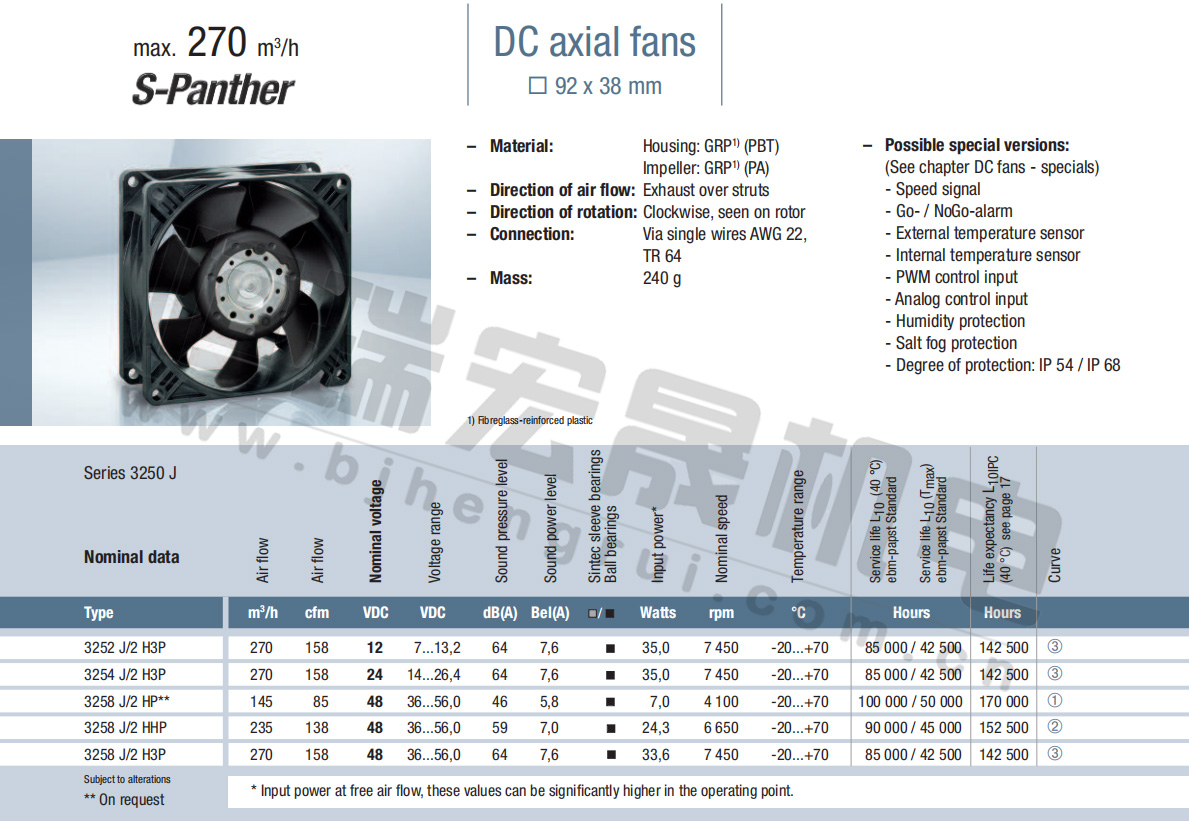 3252J/2H3P風(fēng)量:270m³/h 電壓:12v 噪音:64Db 功率:35W 轉(zhuǎn)速:7450r/min
