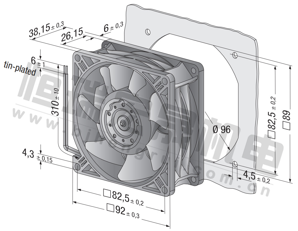 3856風(fēng)量:54m³/h 電壓:230v 電流:3.8A 功率:6.0W 轉(zhuǎn)速:1550r/min
