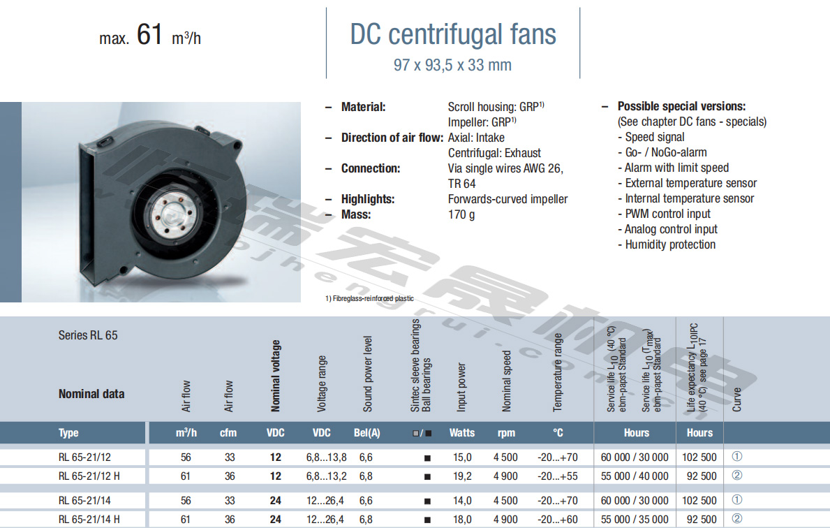 RL65-21/14 風量:56m³/h 電壓:24v 電流:6.6A 功率:14W 轉速:4500r/min