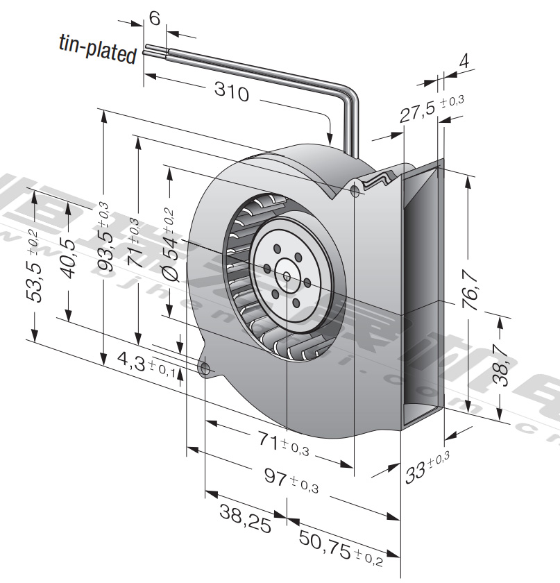RL90-18/06風量:42m³/h 電壓:115v 電流:6.0A 功率19.5W 轉速:2550r/min