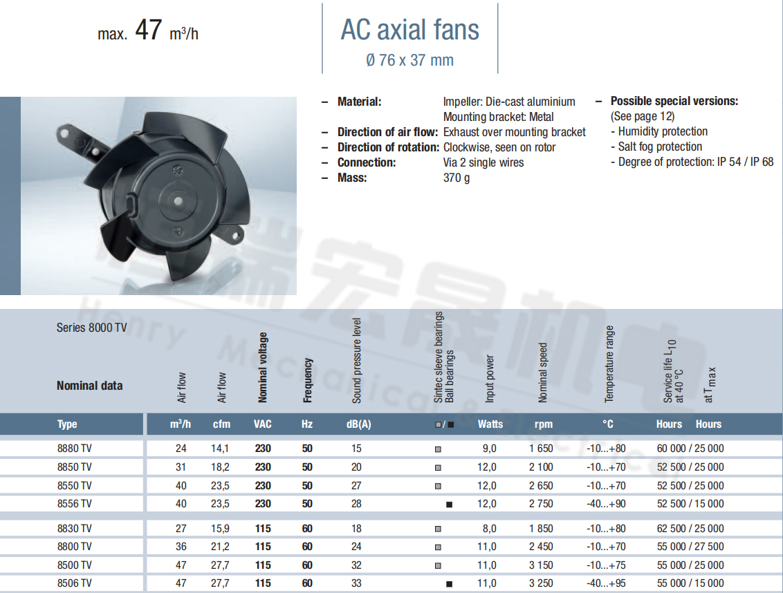 8850TV風(fēng)量:31m³/h 電壓:230v 電流:/ 功率:12W 轉(zhuǎn)速:2100r/min