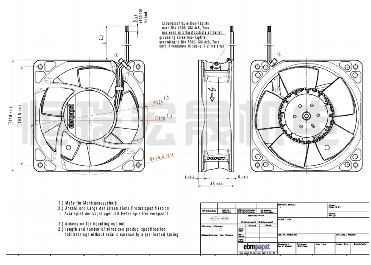 德國(guó)ebmpapst 4114N/2H6PU 軸流風(fēng)機(jī)結(jié)構(gòu)圖