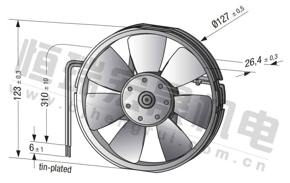 4414FG風(fēng)量:170m³/h 電壓:24v 噪音:43Db 功率:5.0W 轉(zhuǎn)速:2900r/min