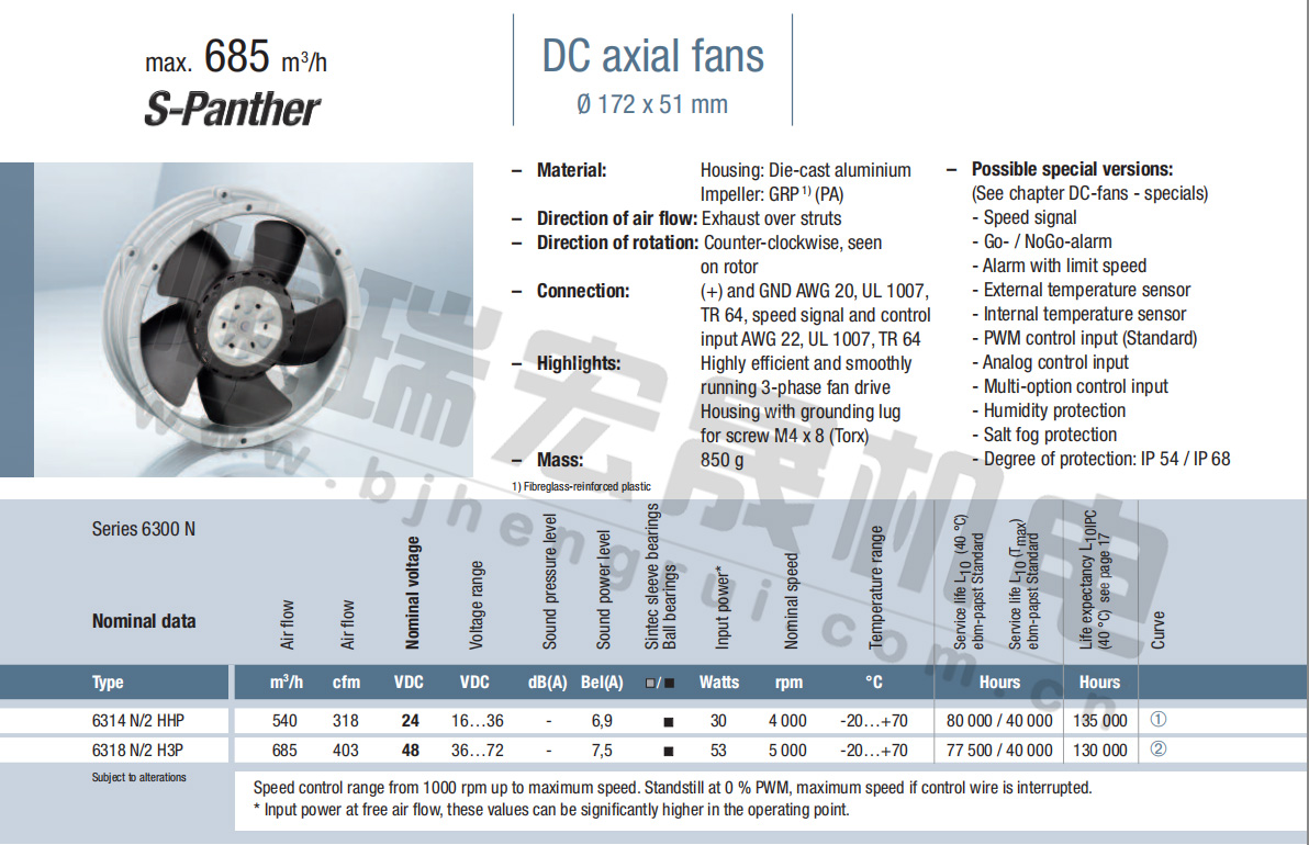 6314/2NP風量:470m³/h 電壓:24v 噪音:56Db 功率:23W 轉(zhuǎn)速:4400r/min