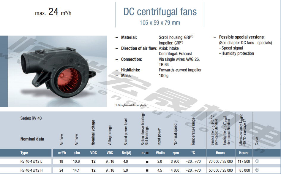 RV40-18/12H風(fēng)量:24m³/h 電壓:12v 電流:5A 功率:4.5W 轉(zhuǎn)速:4800r/min