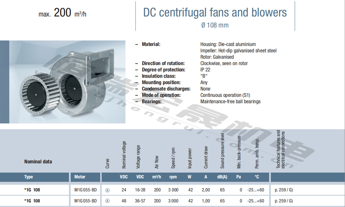 G1G108-AB17-02風(fēng)量:200m³/h 電壓:24v 電流: 2A 功率:42W 轉(zhuǎn)速:3000r/min