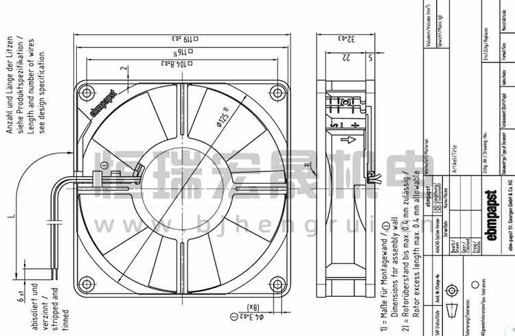 德國ebmpapst 4314M軸流風機結構圖
