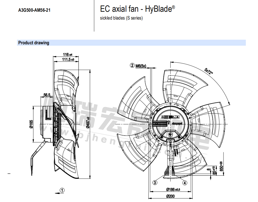 北京恒瑞宏晟低價供應(yīng)A3G500-AM56-21軸流風(fēng)機,適用于通風(fēng)散熱制冷行業(yè)
