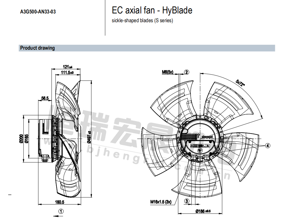 北京恒瑞宏晟低價供應A3G500-AN33-03軸流風機,適用于通風散熱制冷行業(yè)、