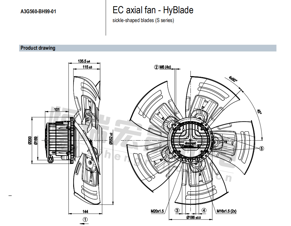 德國ebm全新A3G560-BH99-01軸流風(fēng)機(jī)規(guī)格圖