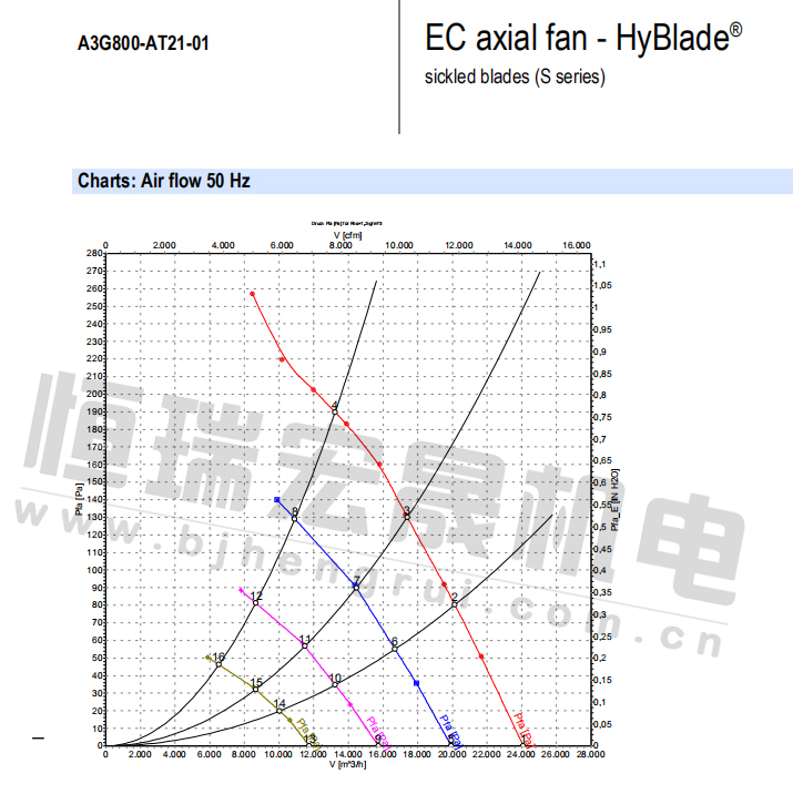 德國ebm全新A3G800-AT21-01軸流風(fēng)機(jī)曲線圖