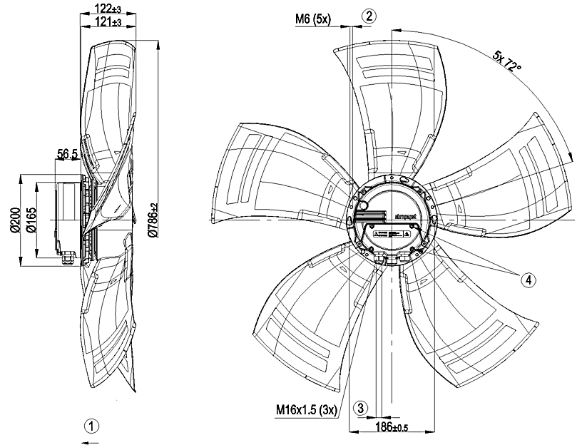 德國ebm全新A3G800-AM67-23軸流風(fēng)機(jī)規(guī)格圖