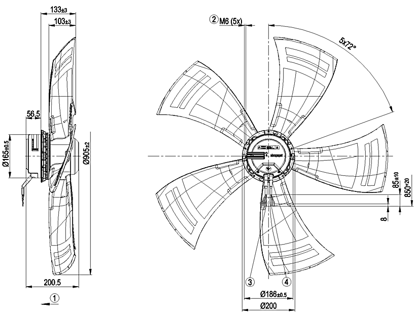 原裝軸流ebm風(fēng)機(jī)A3G910-AO83-01的規(guī)格圖
