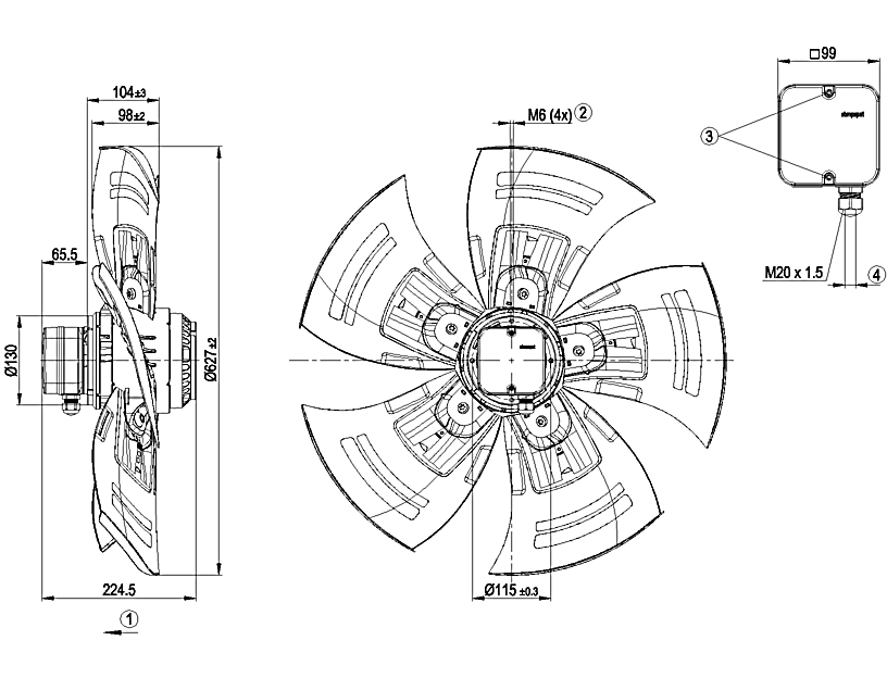 原裝軸流ebm風(fēng)機(jī)A4D630-AR01-01的規(guī)格圖