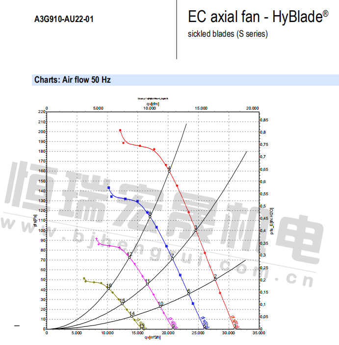 原裝軸流ebm風(fēng)機(jī)A3G910-AU22-01的曲線圖