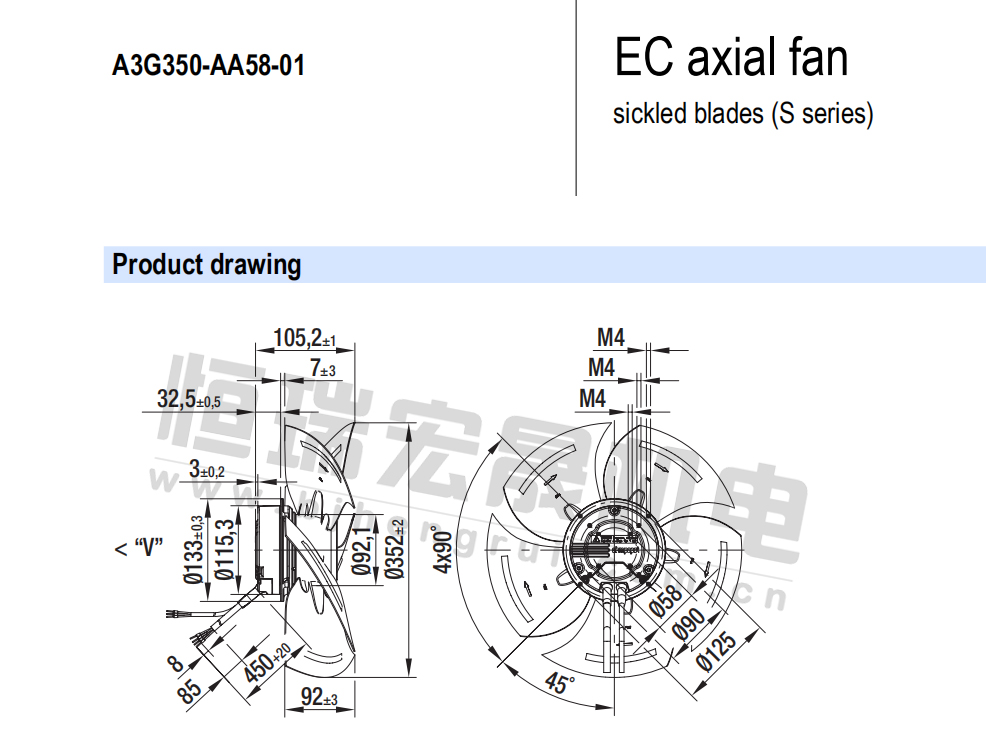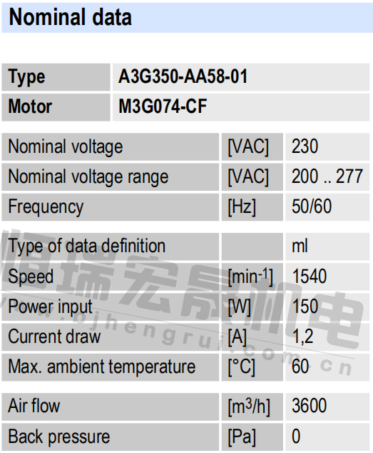 北京恒瑞宏晟低價供應A3G350-AA58-01軸流風機,適用于通風散熱制冷行業(yè)