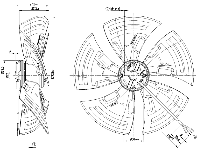 原裝軸流ebm風(fēng)機(jī)A3G350-AG03-01的規(guī)格圖