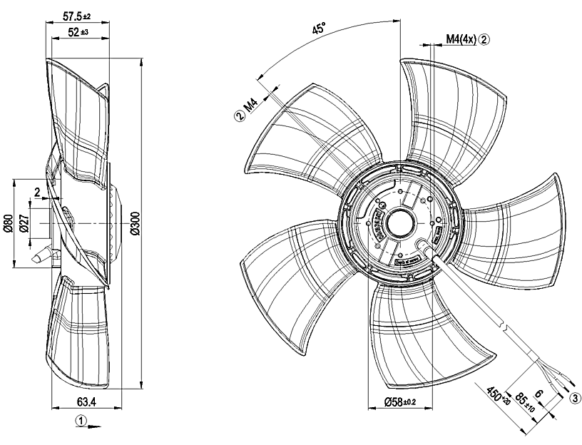 德國ebm全新A4E300-AU26-07軸流風(fēng)機(jī)規(guī)格圖