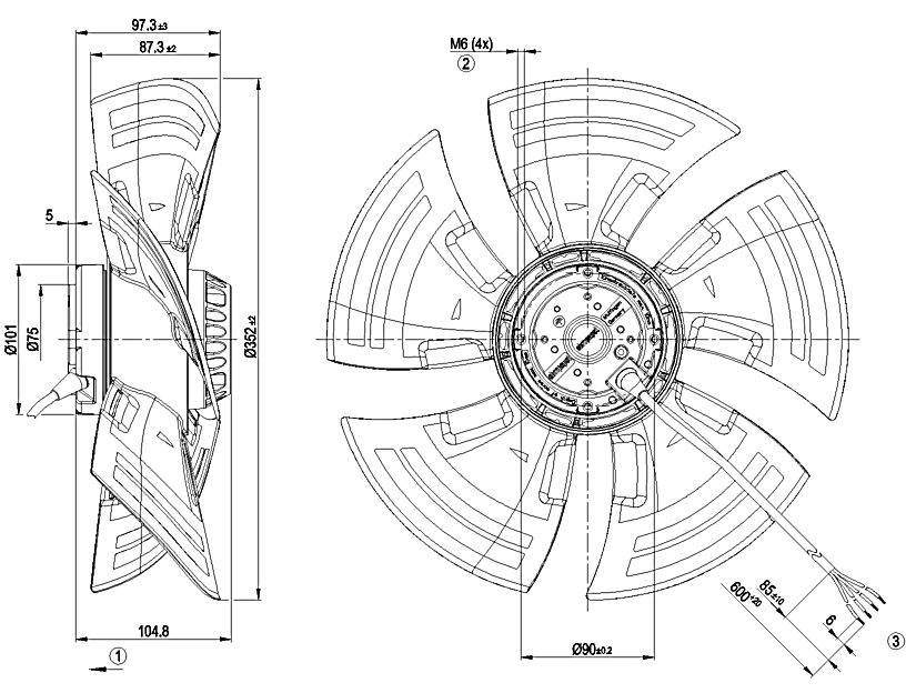 原裝軸流ebm風(fēng)機(jī)A6E350-AN24-01的規(guī)格圖