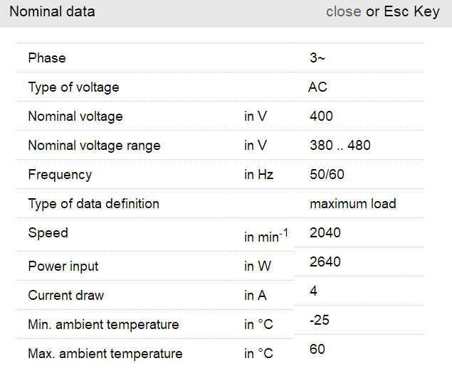 K3G450-RK56-01電壓:380-480V電流:1.50A功率:950W 轉(zhuǎn)速:1550r/min 重量:10.6KG
