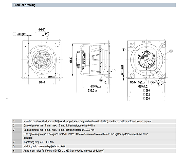 德國(guó)ebmpapst K3G450-PB29-N1 EC離心風(fēng)機(jī)結(jié)構(gòu)風(fēng)量圖