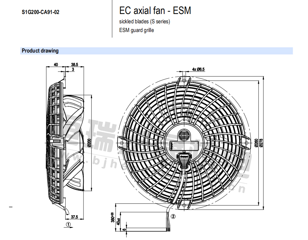 原裝正品軸流ebm風(fēng)機(jī)S1G200-CA91-02 的規(guī)格圖